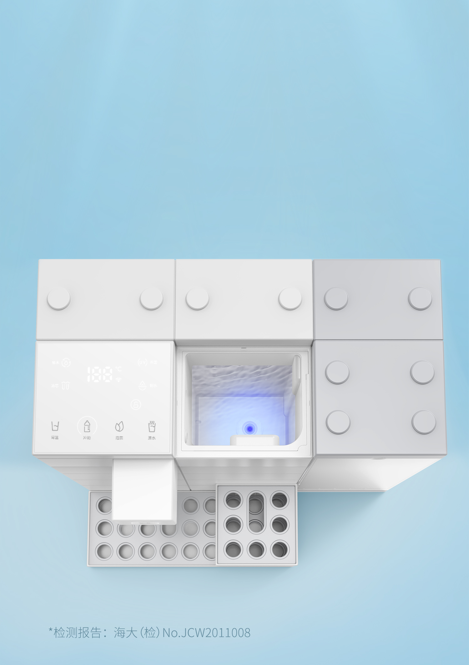 纯水箱内置深紫外LED-UV杀菌灯,杀菌率超过 99%(*大肠杆菌和黄曲霉菌)。