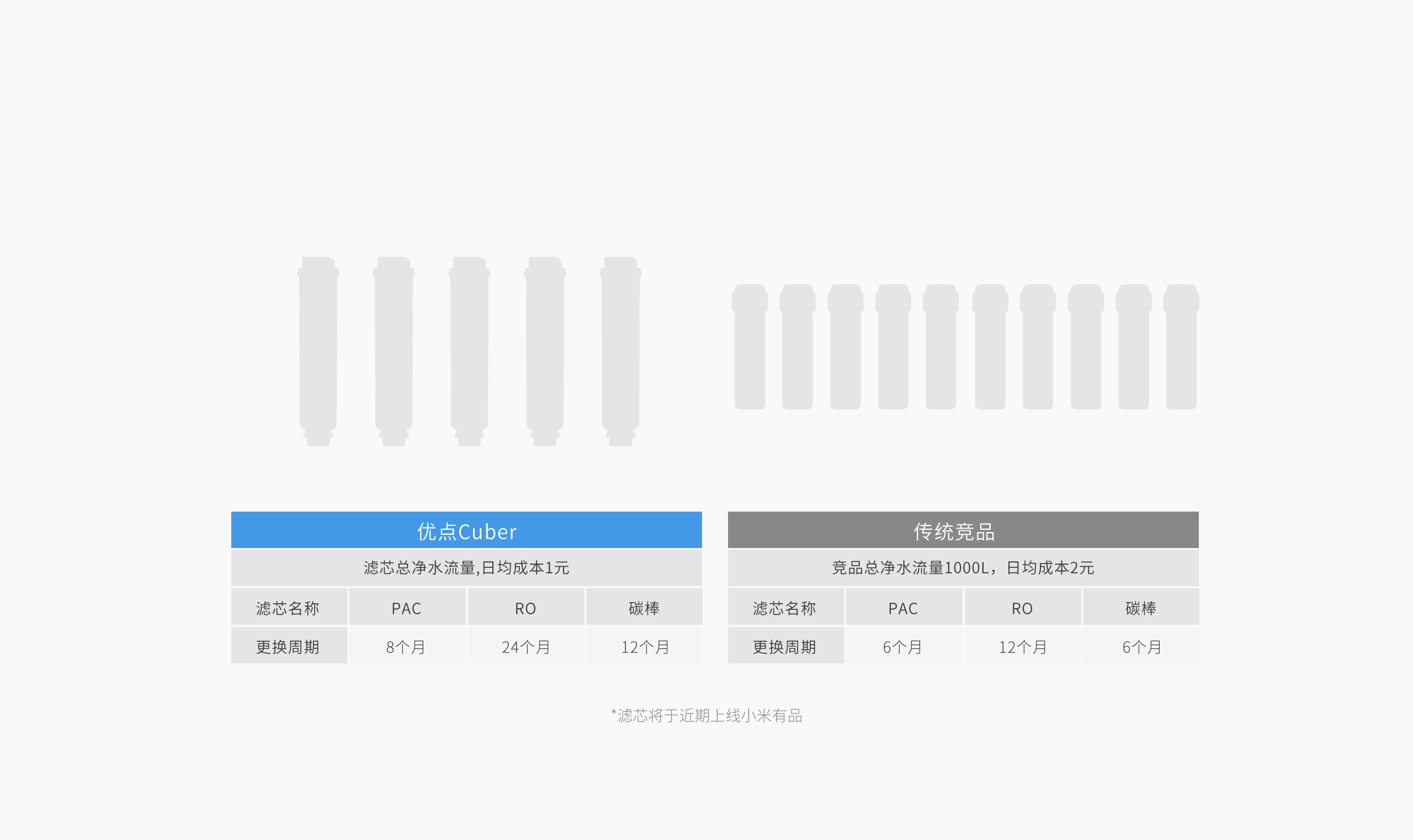 以每日使用5L水计算,优点Cuber滤芯使用寿命更长,换芯费用减少50%。